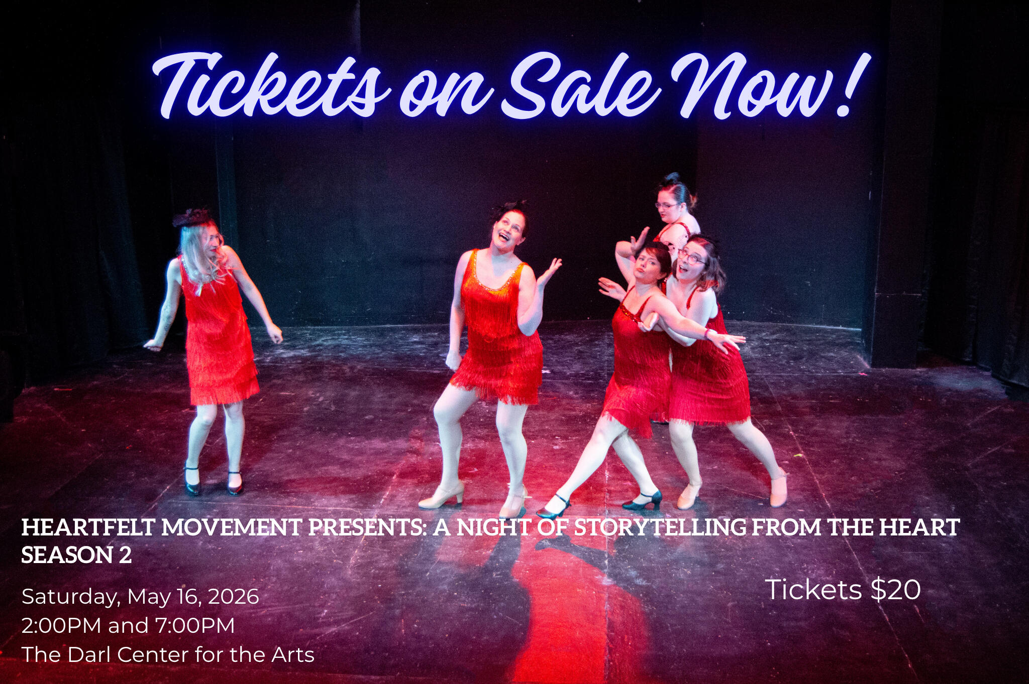 Heartfelt Movement provides a welcoming environment for adults of any age or ability to create, perform, and connect through movement. Part of our mission is to provide a space for artists to showcase their artistry and work, no matter how experienced.We invite artists to apply to be part of our Community Collective Program. Selected artists will have the opportunity to perform at 'Heartfelt Movement Presents: An Evening of Storytelling from the Heart at Blank Canvas Theatre on January 24, 2026.Please review the following program details before applying: